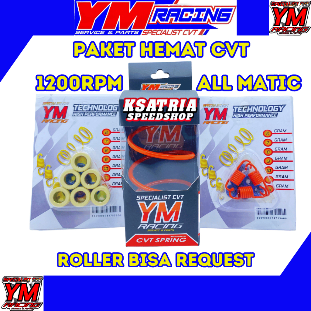 PAKET HEMAT CVT 1200RPM YM RACING ALL MATIC | (Beat/Mio/Vario/Scoopy/Genio/Nmax/Aerox/Lexi/PCX/Xride/Fino/Xeon/Spacy/Fazzio/Filano) | ROLLER PER CVT PER SENTRI |