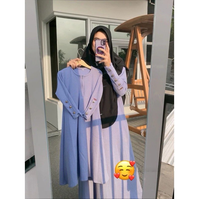 Abaya Madina Couple Ibu dan anak usia 1-15 tahun bahan seline rib viscose adem lengan kancing GOLDSS