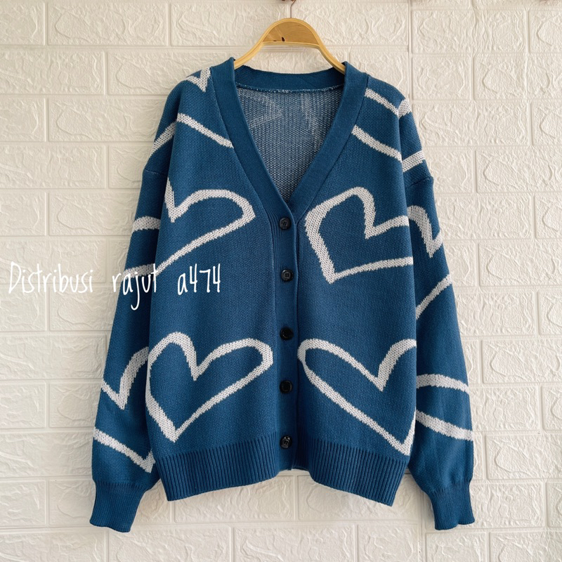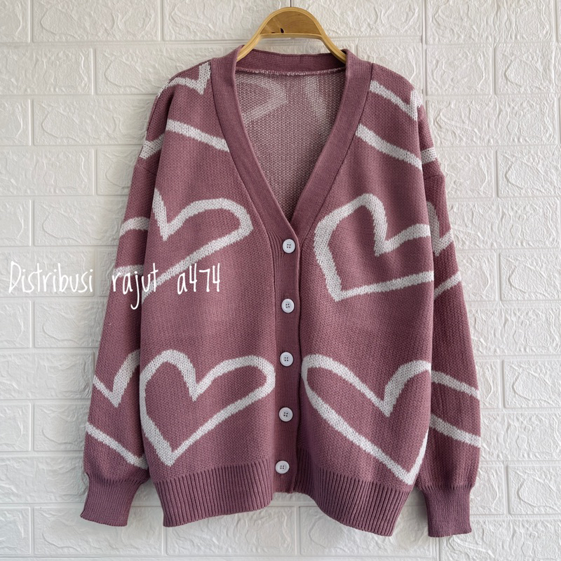 HILDA CARDIGAN RAJUT KANCING POLOS MOTIF LOVE ATASA LENGAN PANJANG