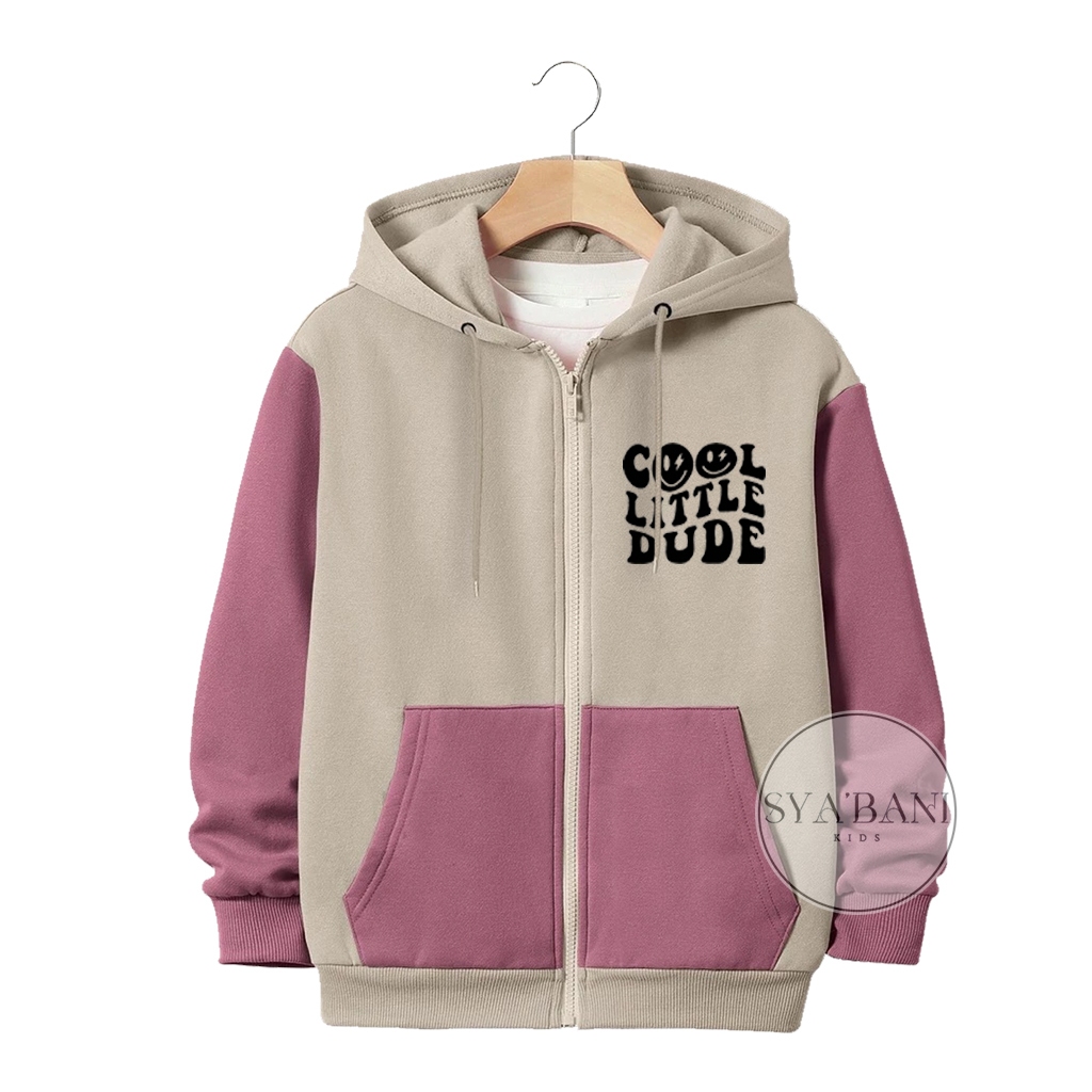 Jaket Zipper Anak Laki-laki Perempuan Usia 2-13 Tahun Sablon COOL LITTLE Kombinasi Fleece
