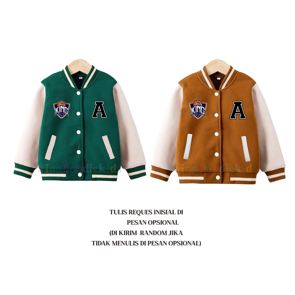 KING Varsity Jacket Baseball Anak Laki Laki Perempuan Umur 2-12 Tahun Tahun