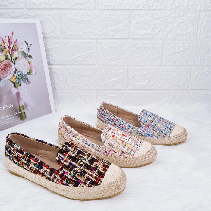 Coline Cln-272 Nylon Loafers Shoes Sepatu Wanita C1087 Karet Sendal Kerja Sneakers Cewek Kasual Kasual - Cln-272#Black,