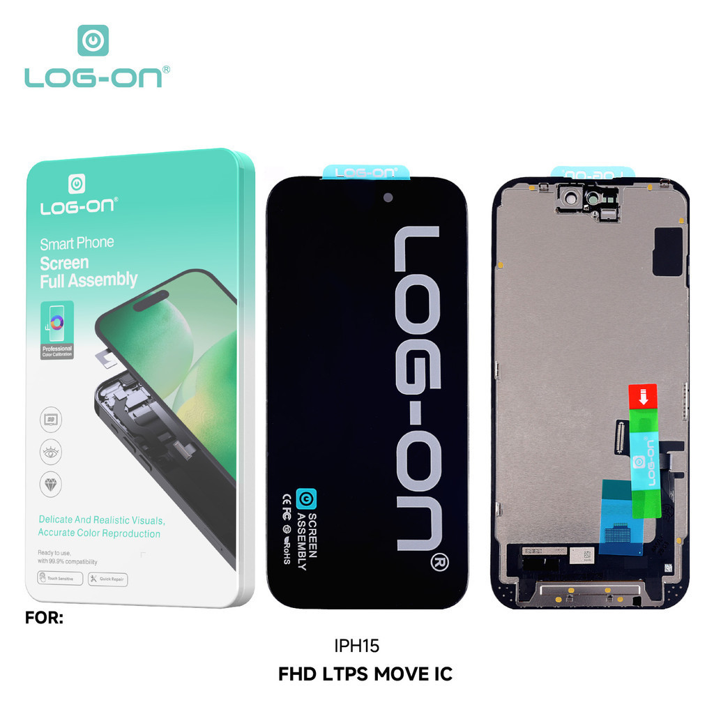 LOG-ON LCD FOR IPHONE 15 / 15 PRO / 15 PRO MAX / 15 PLUS FHD LTPS MOVE IC FULLSET TOUCHSCREEN OEM