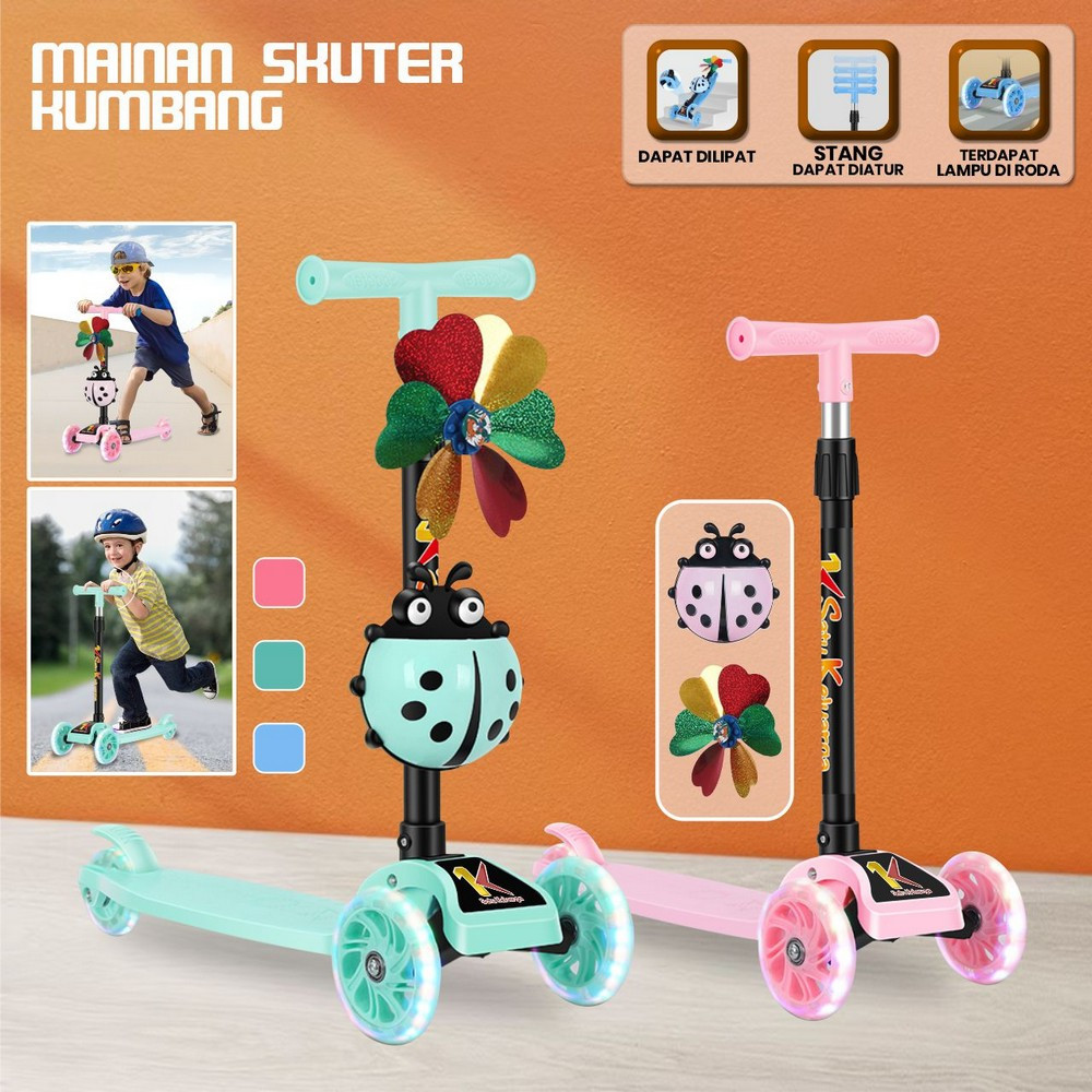 Mainan Otopet Scooter Anak Otoped Kumbang Skuter Anak Roda 3 Bisa Lipat Lampu LED Roda Murah Stockami-M95