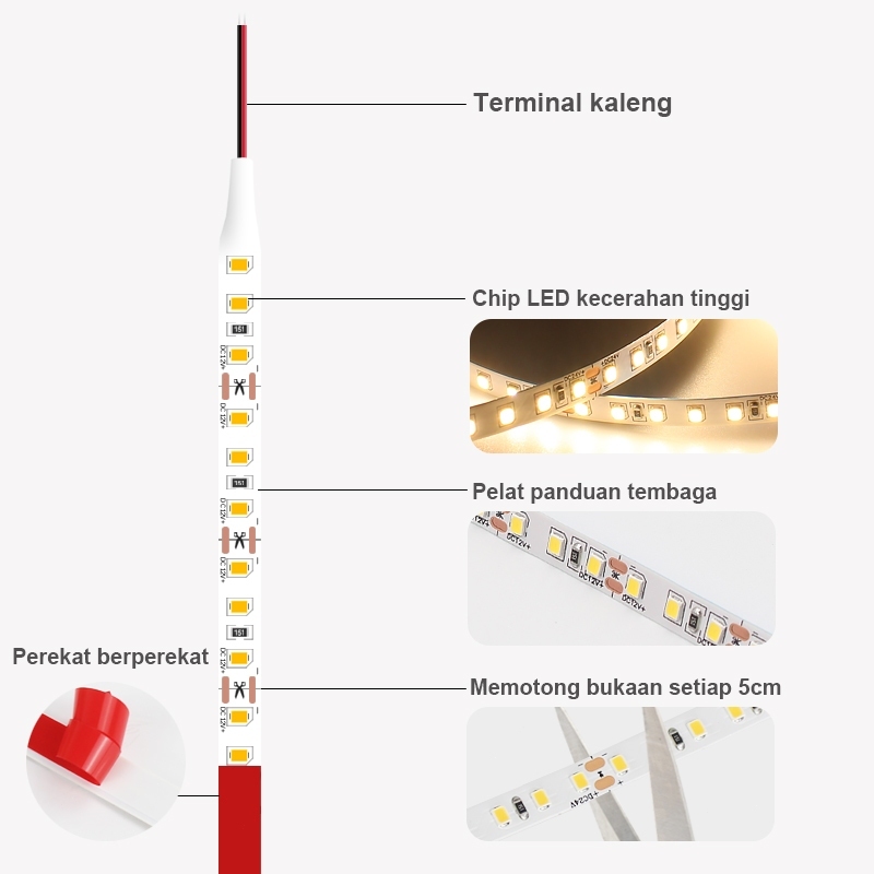 LED Strip 12V/24V 10M 120LED SMD - Strip Lampu Hias Fleksibel Bisa Dipotong - Lampu Dekorasi Mobil & Rumah Waterproof - Untuk Kabinet, Aquarium, Papan Iklan