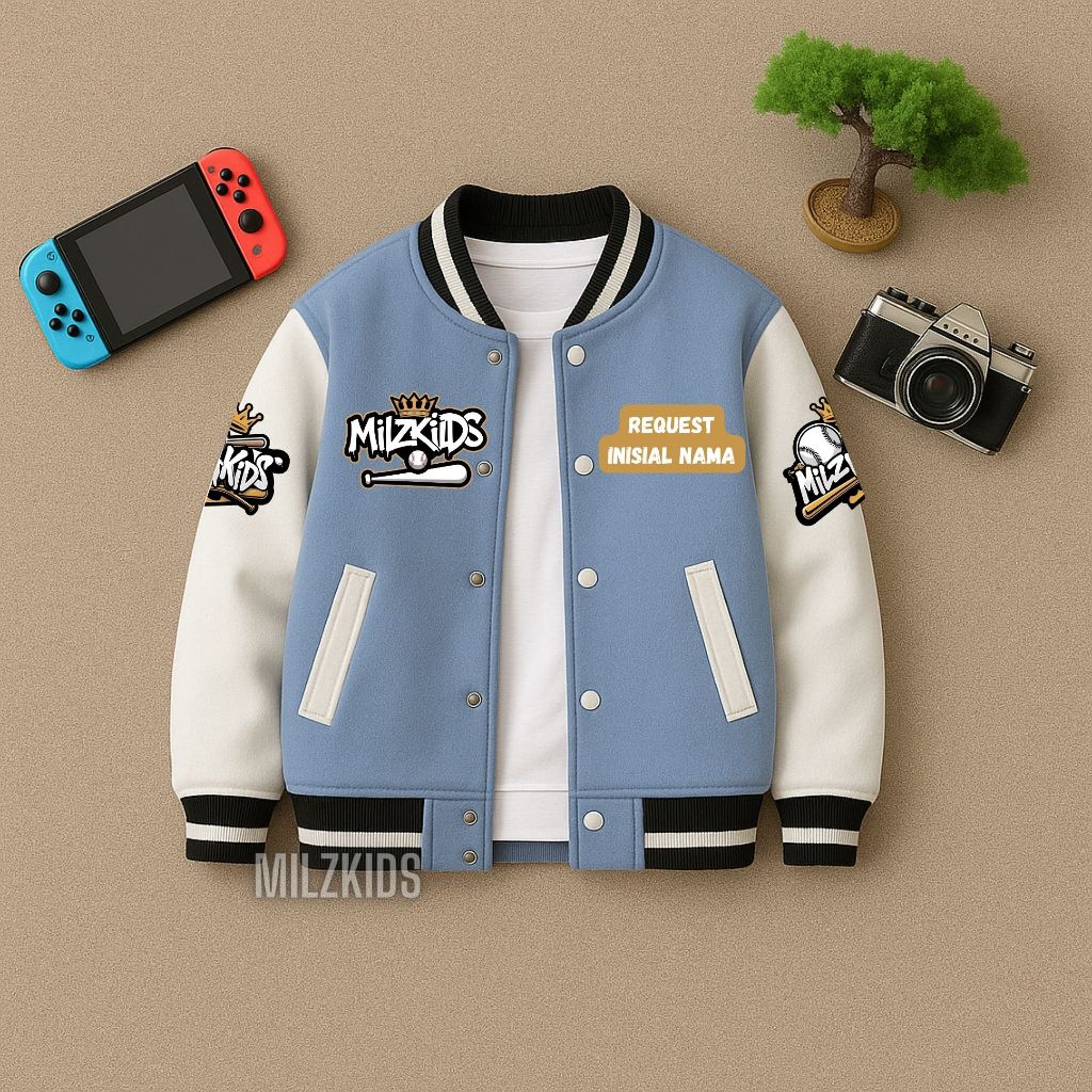 Jaket Varsity Baseball Anak UNISEX CUSTOM INISIAL NAMA Usia 2 - 12 Tahun SPESIAL EDITION