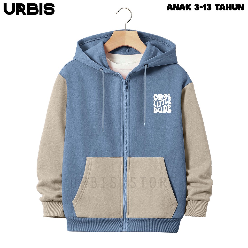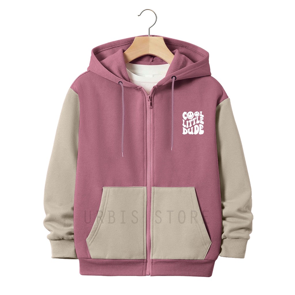 Jaket Zipper Anak Laki-laki Perempuan Usia 3-13Tahun Sablon COOL LITTLE Kombinasi Fleece Tebal URBIS