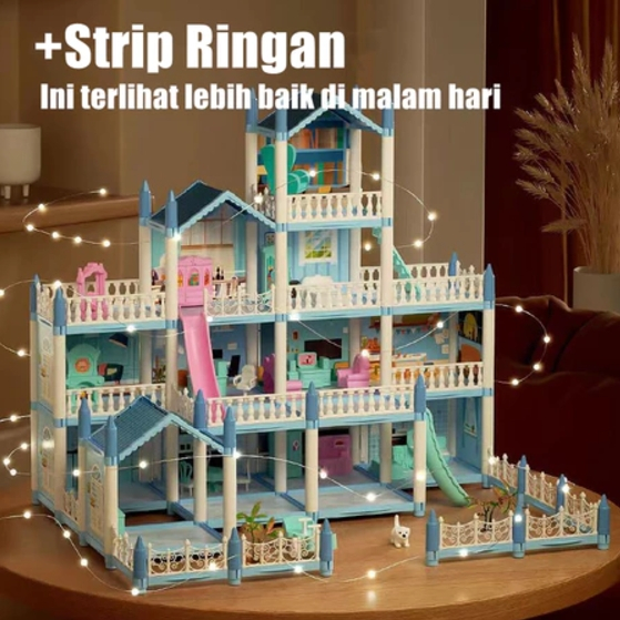 Mainan Rumah Boneka Princess Castle Rumah Princess Rumah Boneka Villa Princess Castle Dengan Lampu Dan Boneka