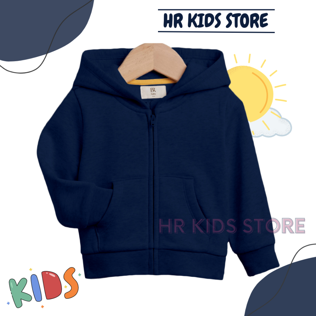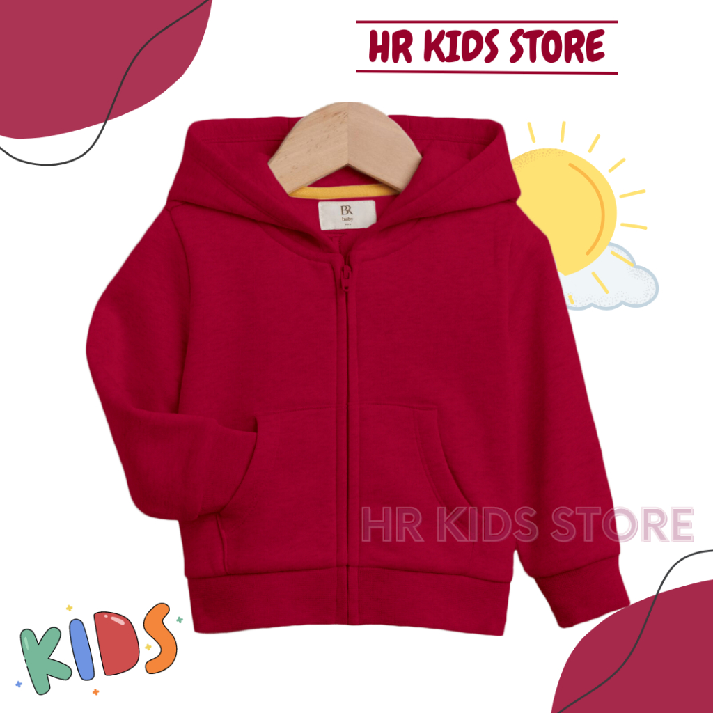 Hoodie jaket anak perempuan laki laki model zipper polos umur 2-12 tahun cewek cowok