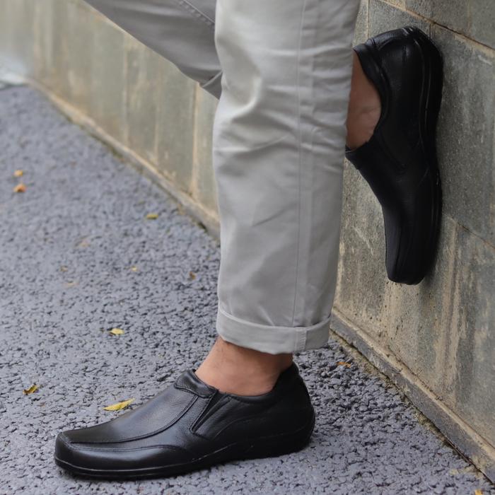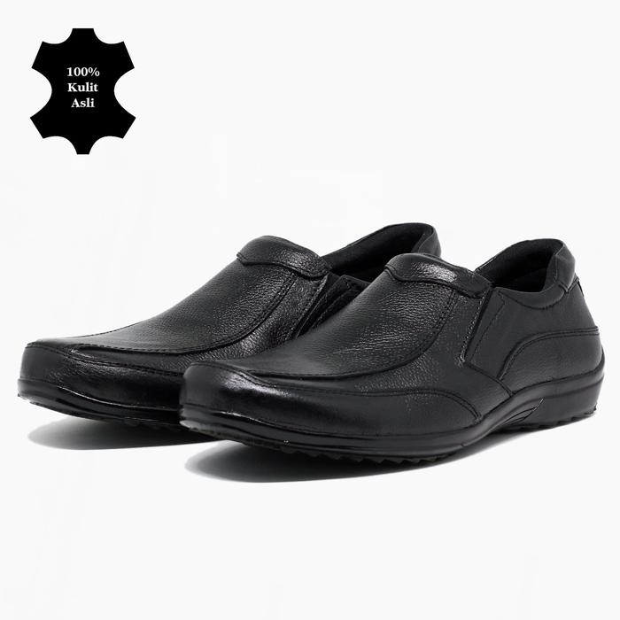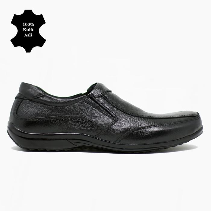 Sepatu Pantofel Sepatu Kulit Asli Pria Model Casual Santai - Hitam, 39