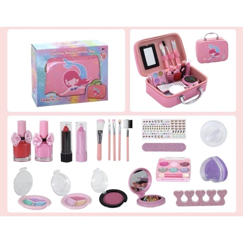 GU Mainan Make Up Bag Mermaid / Alat Rias Anak Fungsi Real / Children Pretend Play / Glamous Beauty Bag
