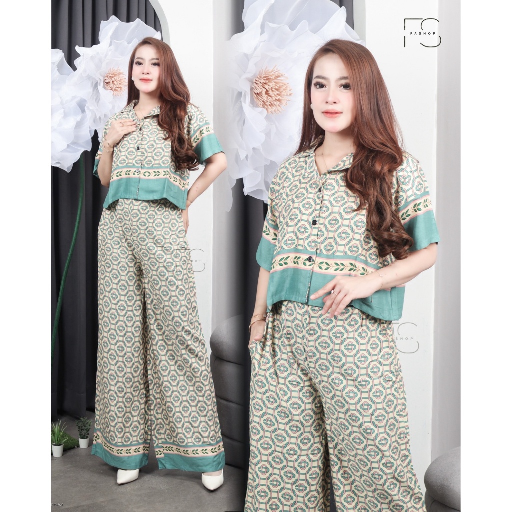 ONE SET CROP CELANA KULOT HIGHWAIST | ONE SET KEKINIAN | STELAN WANITA NYAMAN DAYLY | PIYAMA SET RAYON GRADE A