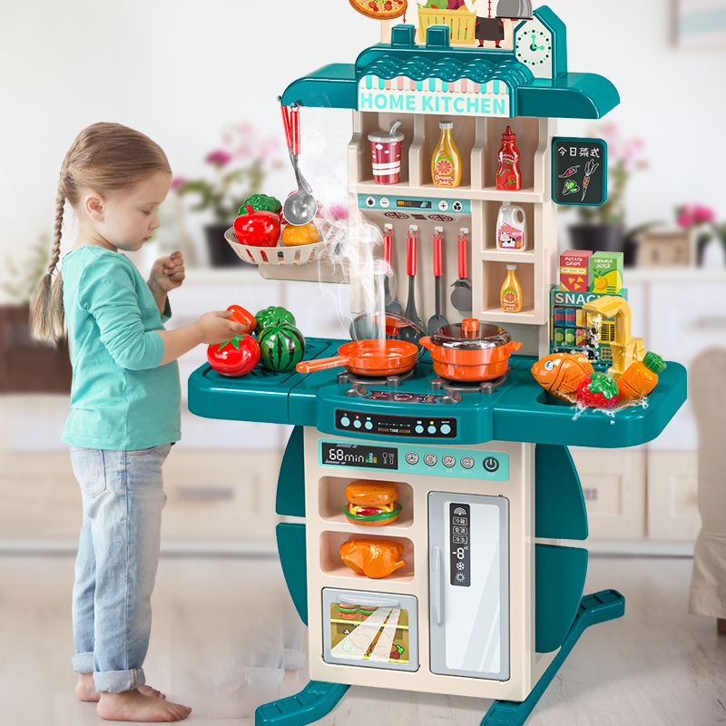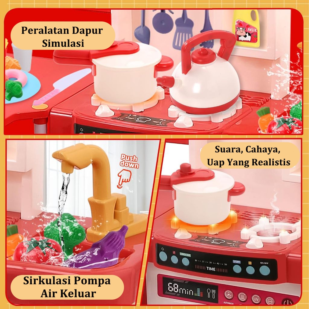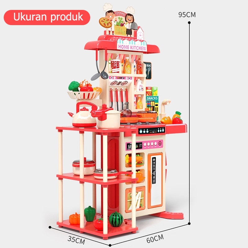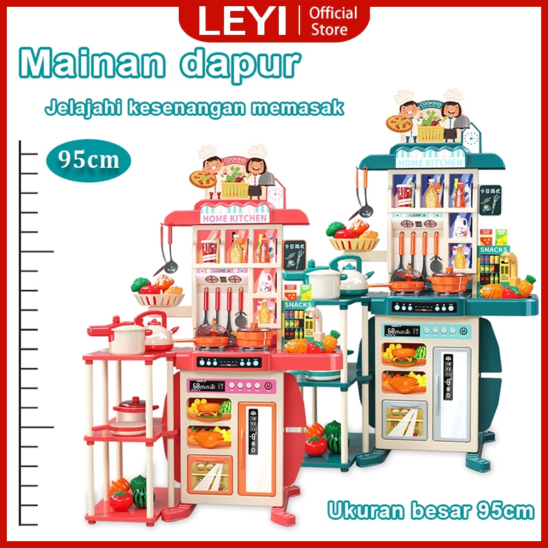 LEYI 95CM Mainan Masak Masakan Jumbo Wastafel Dapur Spraying Mist Mainan Masak Anak Perempuan