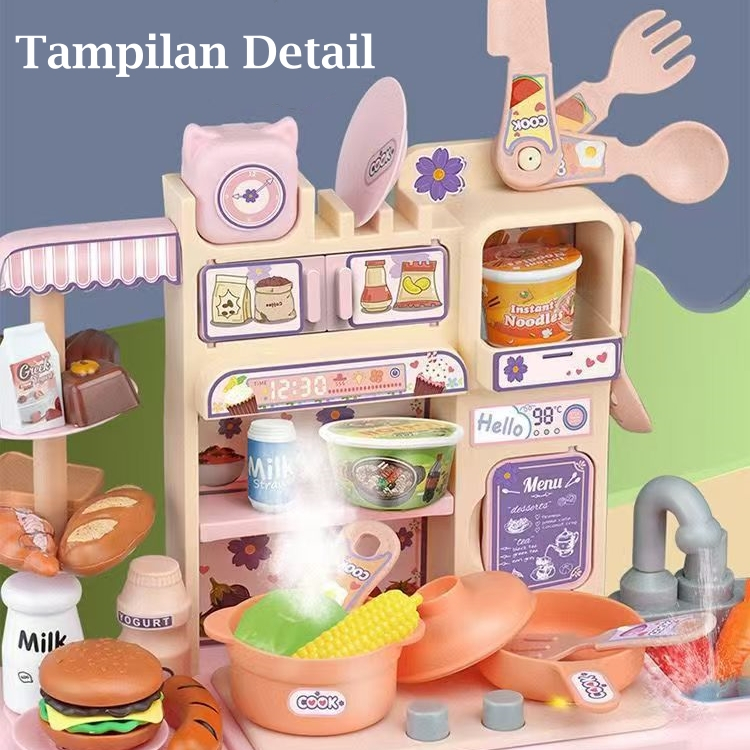 Gifunny Mainan Dapur Anak Kitchen Set Jumbo Simulasi dengan Wastafel, Efek Cahaya & Asap, Hadiah Ulang Tahun