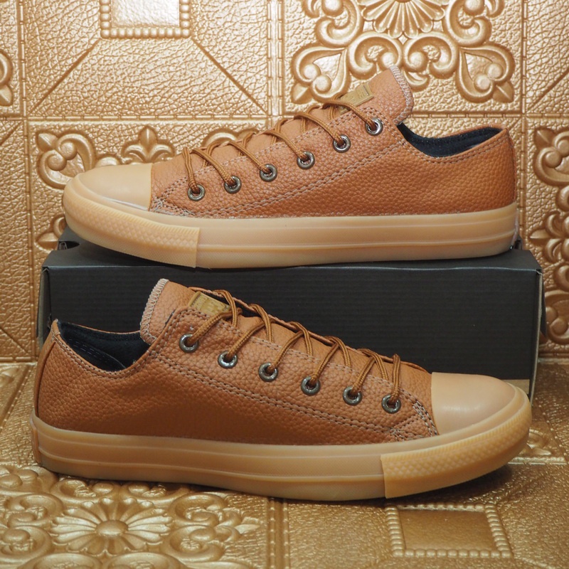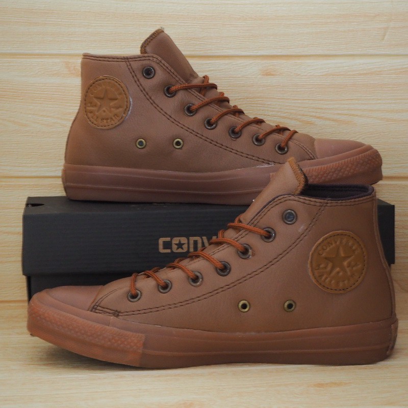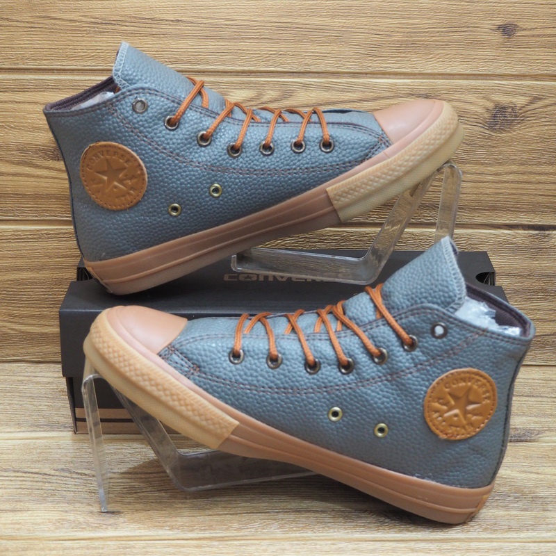 SEPATU PRIA CONVERSE ALL STAR KULIT MOTIF KULIT JERUK COKLAT MUDA TINGGI