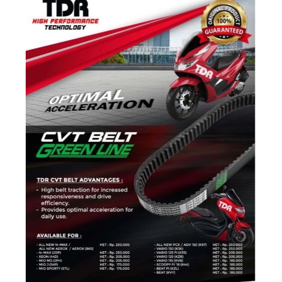 Van belt Racing TDR CVT belt greenline V-belt nmax aerox vario beat mio xeon pcx scoopy genio new fi