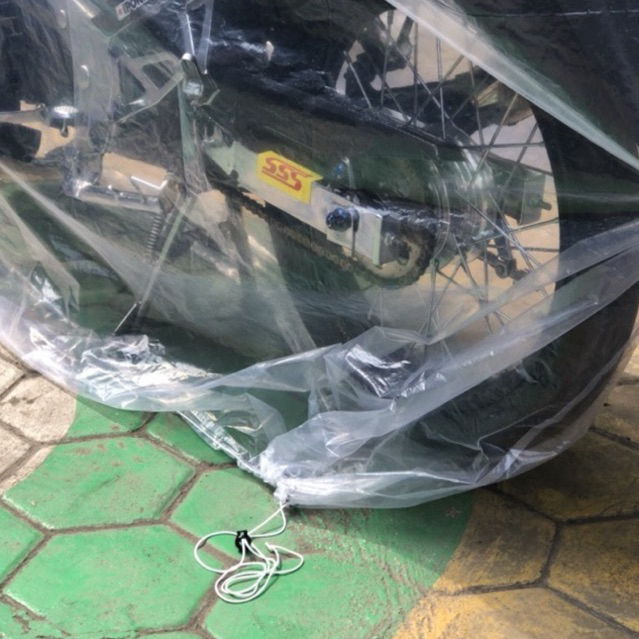cover / selimut / sarung motor mantel transparan bening plastik universal + bagian bawah tali perekat