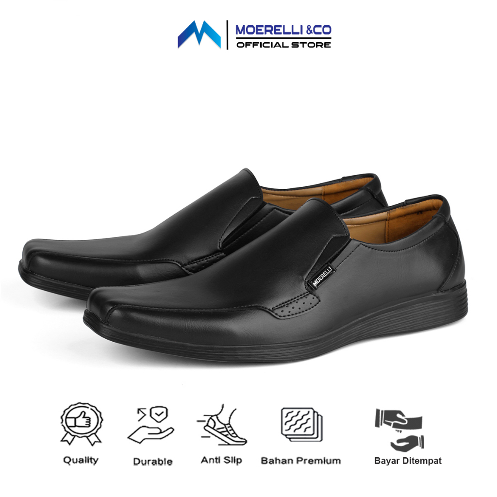 Moerelli &Co Mrl7106 Black Agnolia | Sepatu Pantopel Pria Hitam Kerja Kantor Formal - Moerelli