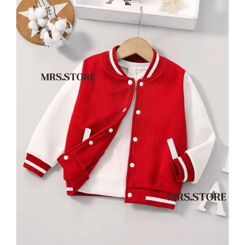 Jaket Baseball Anak Polos Laki Laki Perempuan Umur 2 3 4 5 6 7 8 9 10 11 12 Tahun Jacket varsity Anak Cewe Cowo/Kad