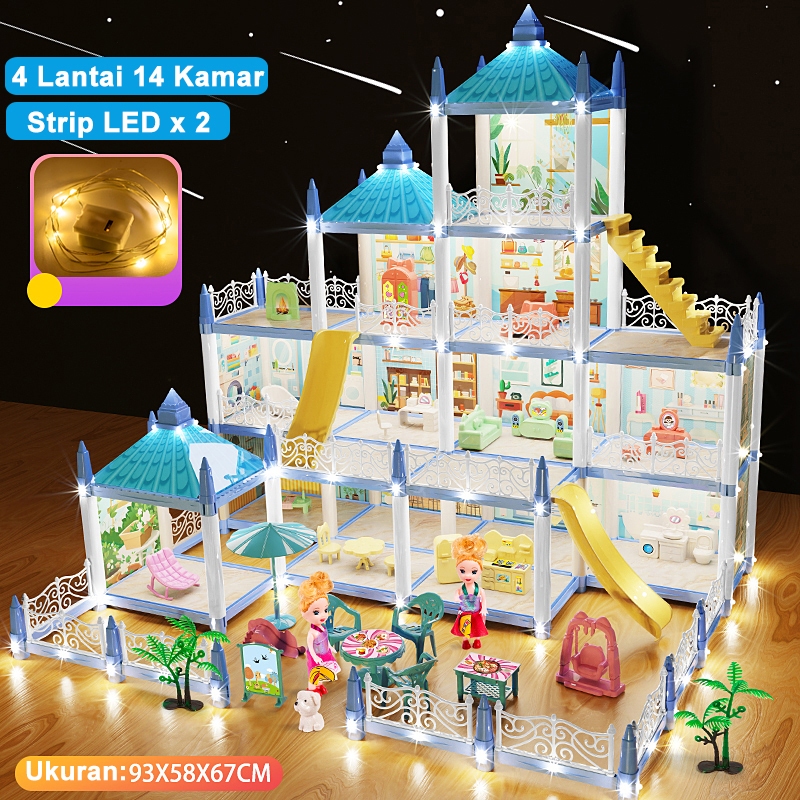 LUKATSU Mainan Rumah Boneka Princess Castle Rumah Princess Rumah Boneka Villa Princess Castle Dengan Lampu Dan Boneka Mainkan Mainan Rumah
