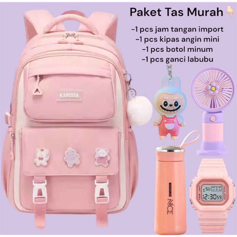 Tas Punggung Anak Sekolah Karisa polos Backpack multifungsi kedap air Fashion anak sd smp sma 2025