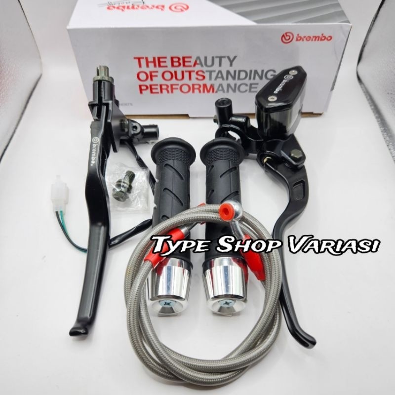 Paket 4in1 Master Rem Tabung Tipe Oval + Handgrip Sisik + Jalu Stang Chrome + Selang Rem 95cm Universal