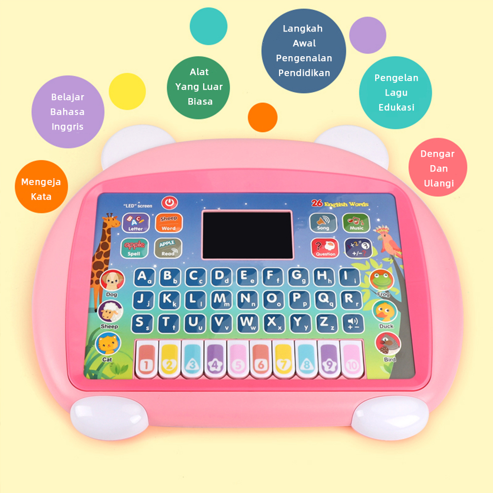 Uoptoy Mainan Tablet Anak LED Belajar Laptop Mainan Alfabet Piano Mainan Belajar Tablet untuk Anak-anak Maianan Edukasi Anak