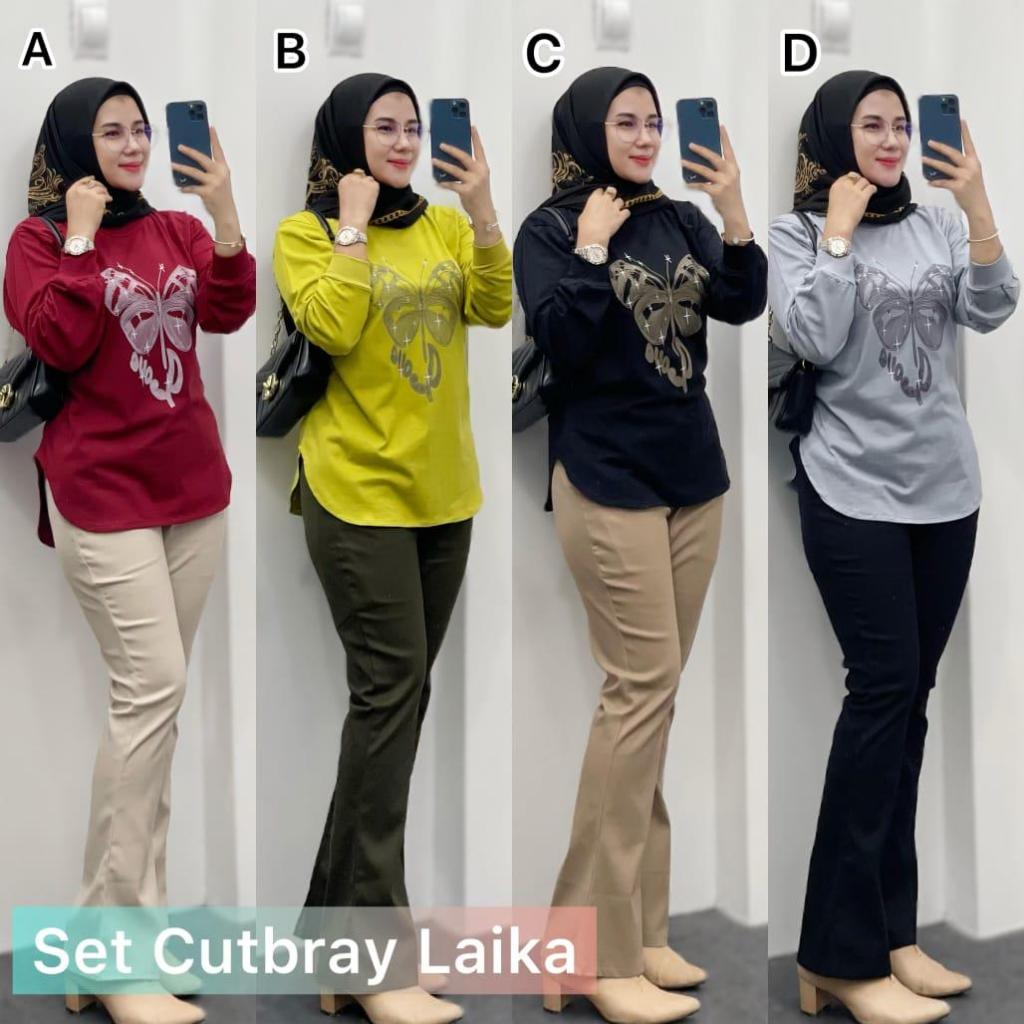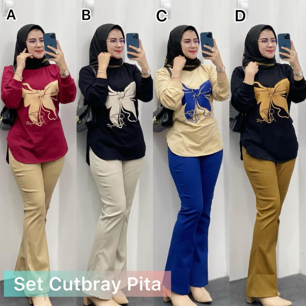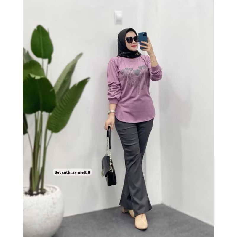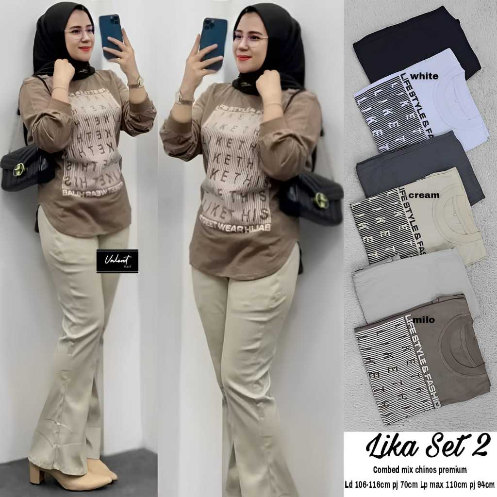 Setelan Wanita Celana Chinos Cutbray Atasan Kaos Combed Premium