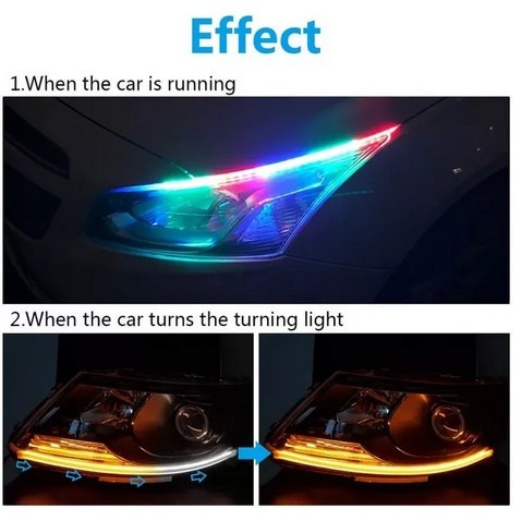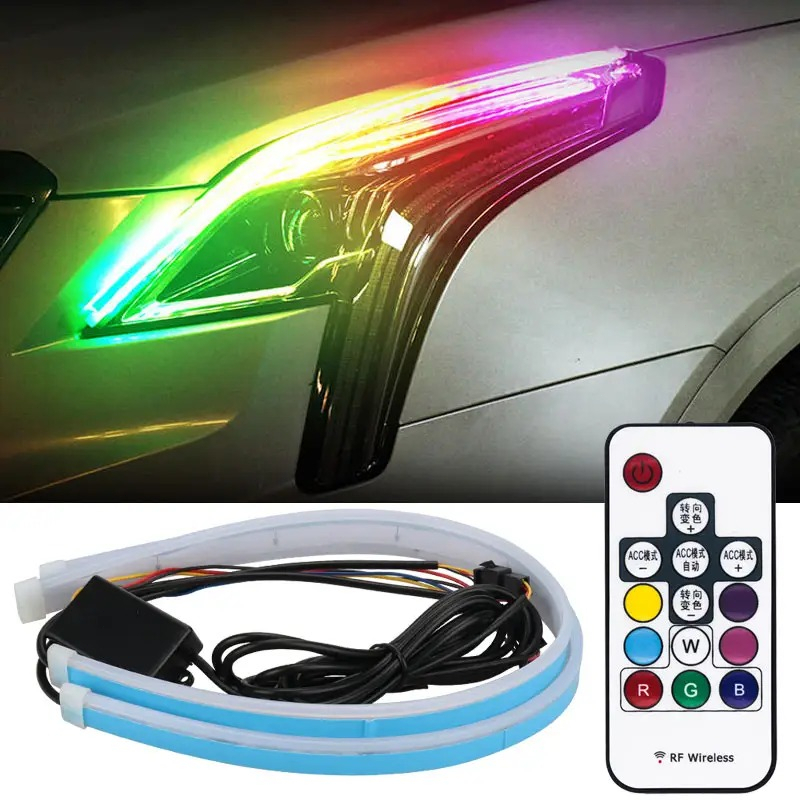 Lampu LED Alis DRL Slim Tempel Remote RGB + Sein Running - 30cm, 60cm 12 Volt harga 1set Lengkap