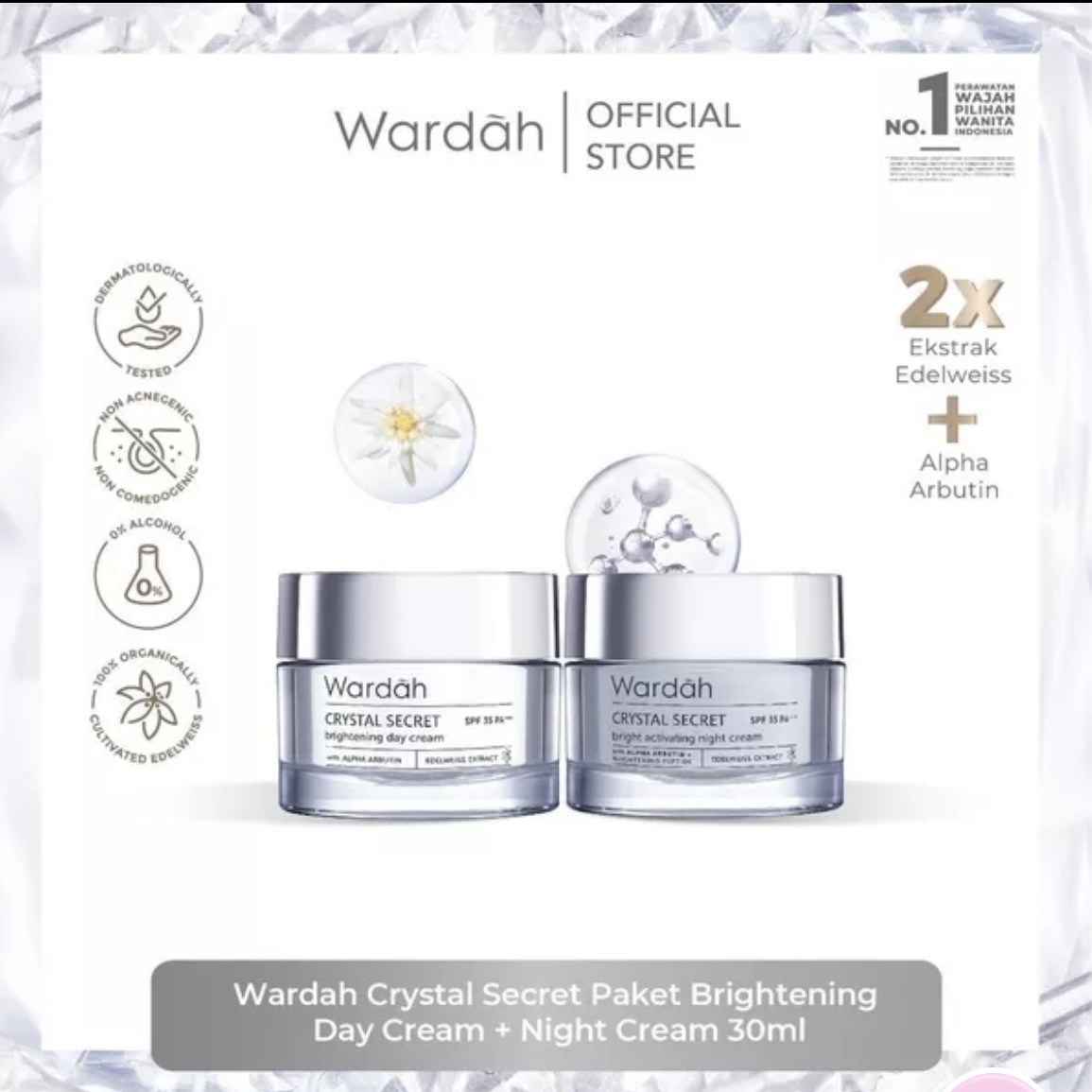 [BUNDLING] Wardah Crystal Secret Paket Brightening Day Cream - Night Cream 30g