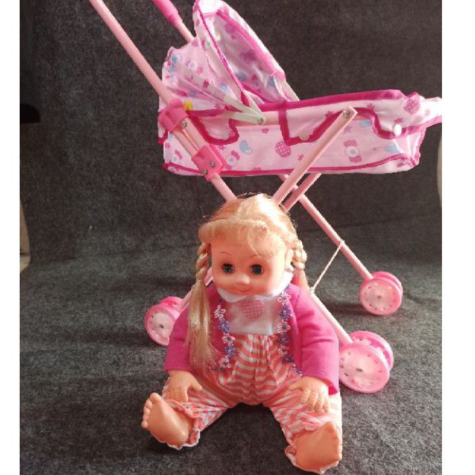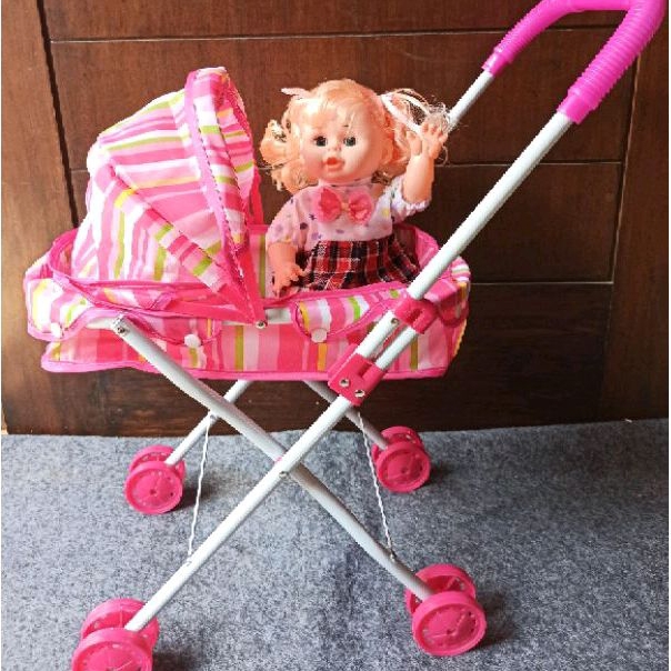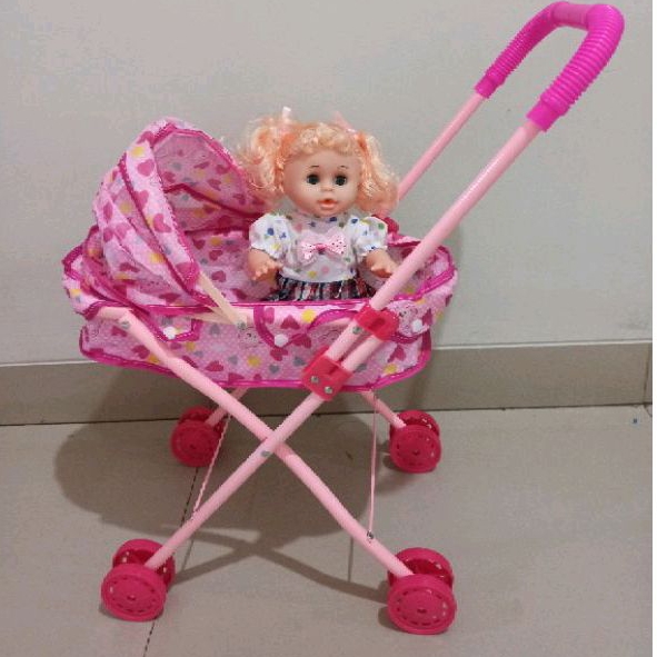 Mainan anak dorongan stroller boneka + baby girl boneka rangka besi