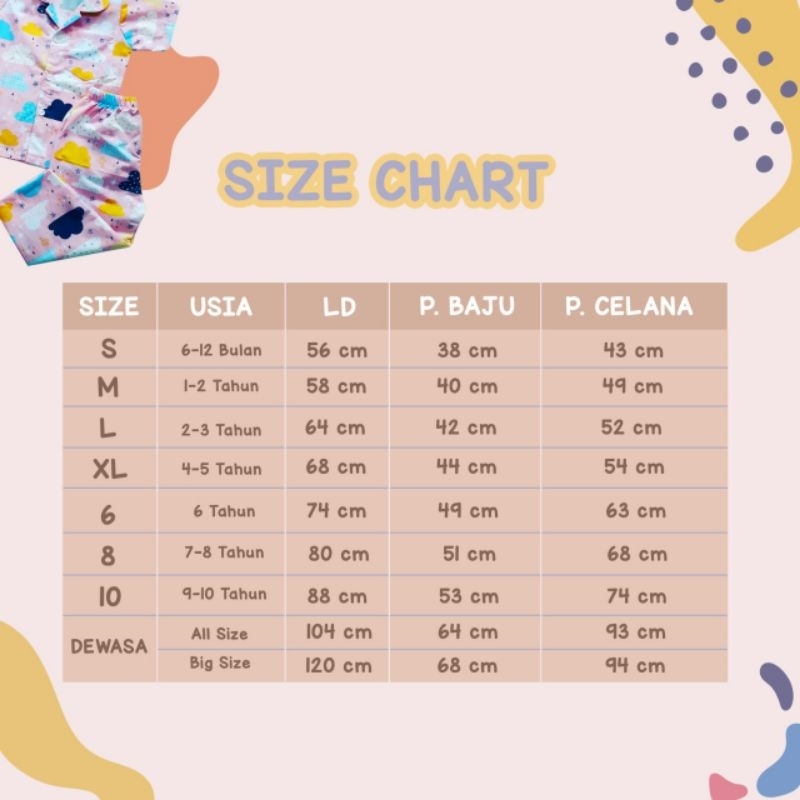 S, M, L, XL, size 6, size 8, size 10, size 12, dewasa Ld 104 cm, big size LD 120 cm