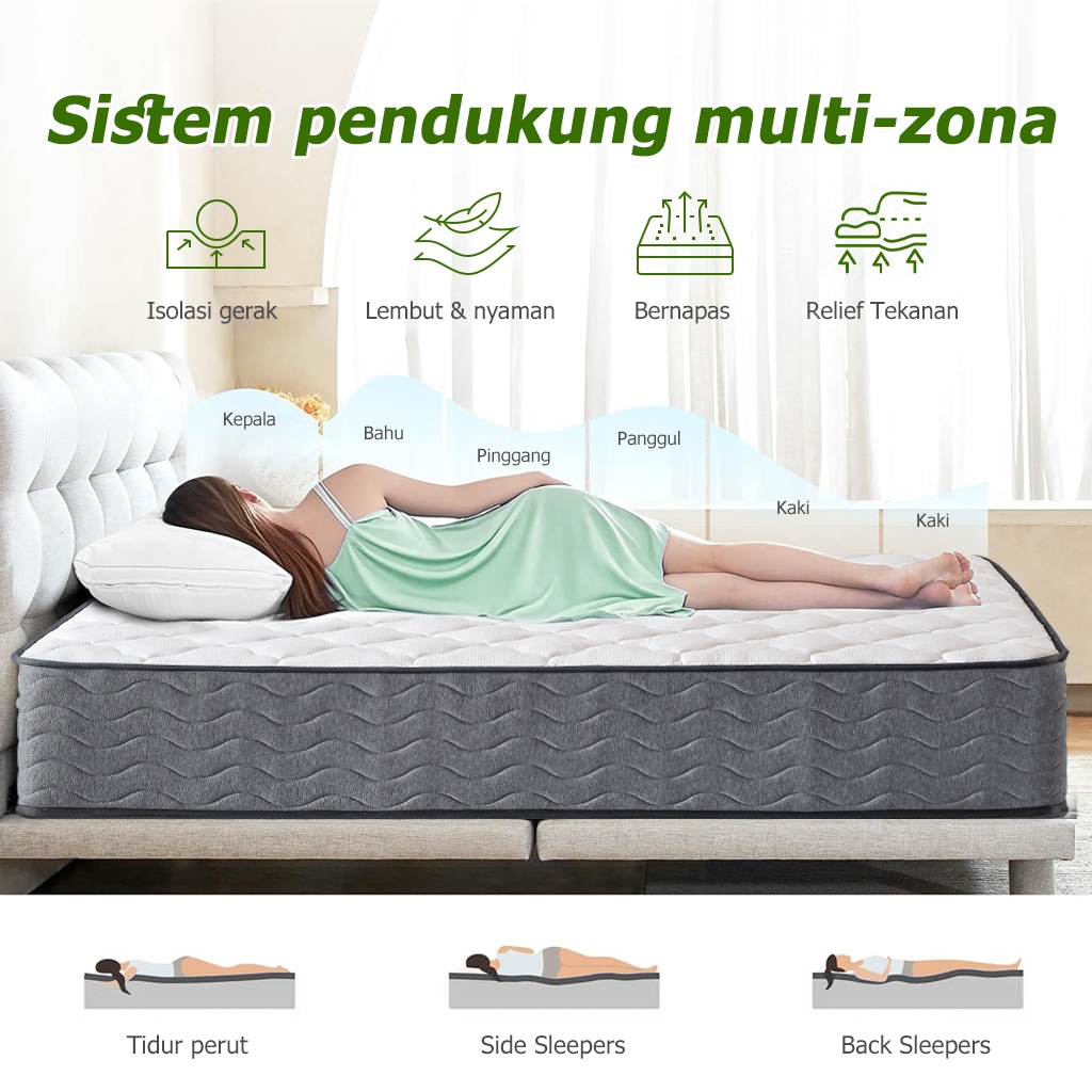 Kasur Springbed Tebal 20/26cm IceMint Spons Busa Empuk Lantai Matras Anti Lembab Free Bantal