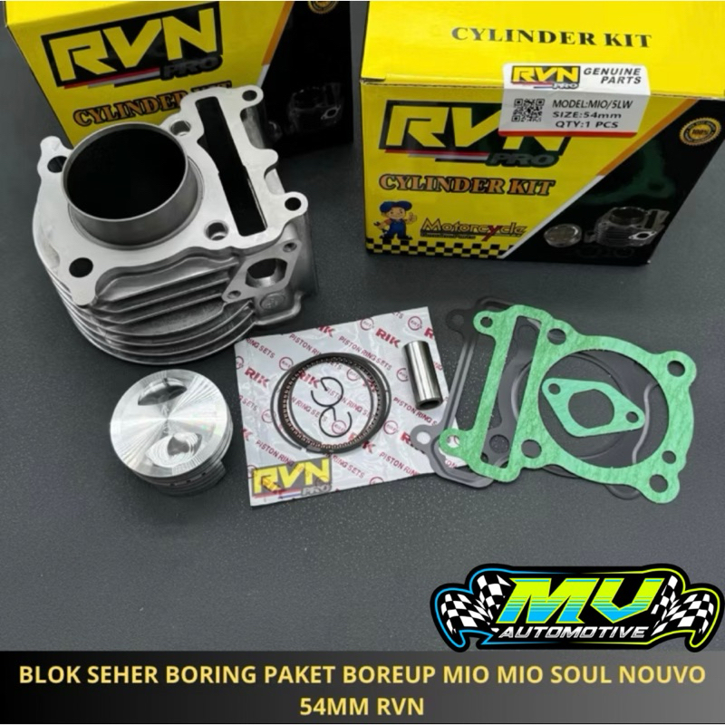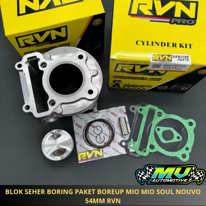 RVN BLOCK SEHER BORING BLOK SEHER STANDAR 50MM - BORE UP 54MM 58.5MM MIO SPORTY MIO SOUL MIO LAMA NOUVO ORIGINAL RVN PLUS PISTON KIT SEPAKET FREE PAKING 5LW