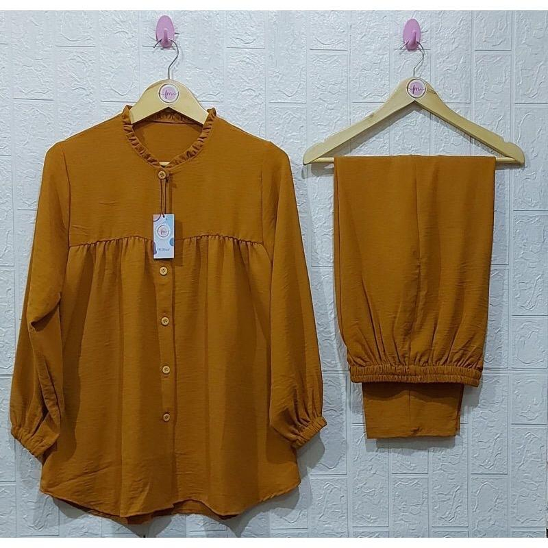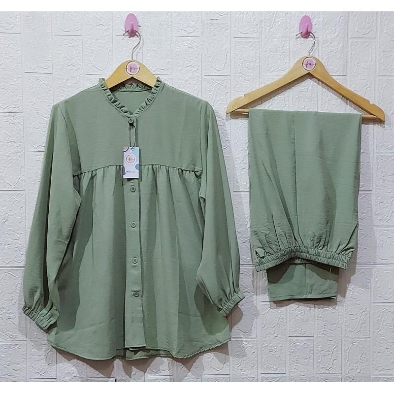 AYS-One Set Wanita Setelan Kemeja Crinkle Set 2in1 Size XL XXL Busui Lengan Panjang Daily Outfit