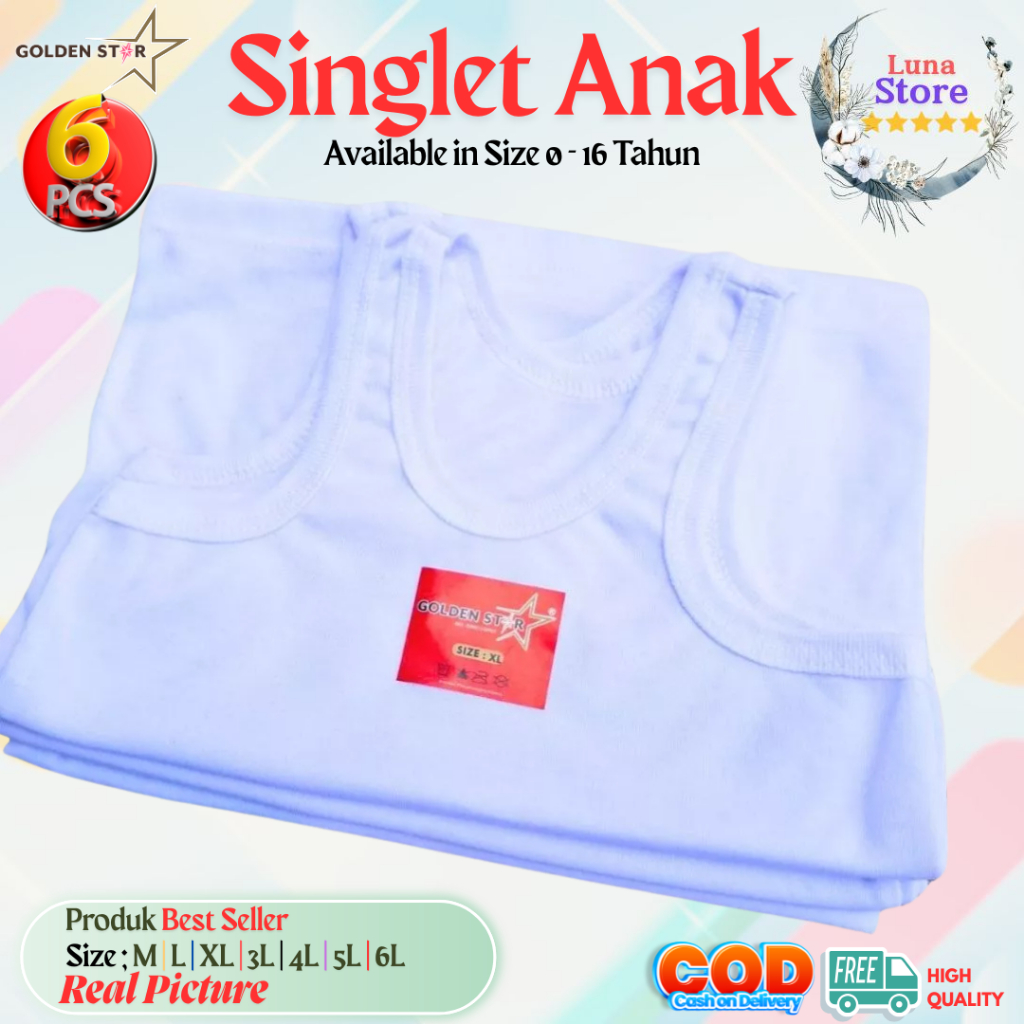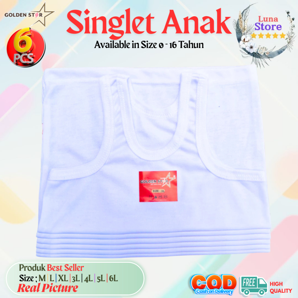 Kaos Dalam Singlet Anak GOLDSEN STAR Unisex Best Seller / Singlet Anak / Kaos Dalam Anak Putih / Singlet Anak Putih