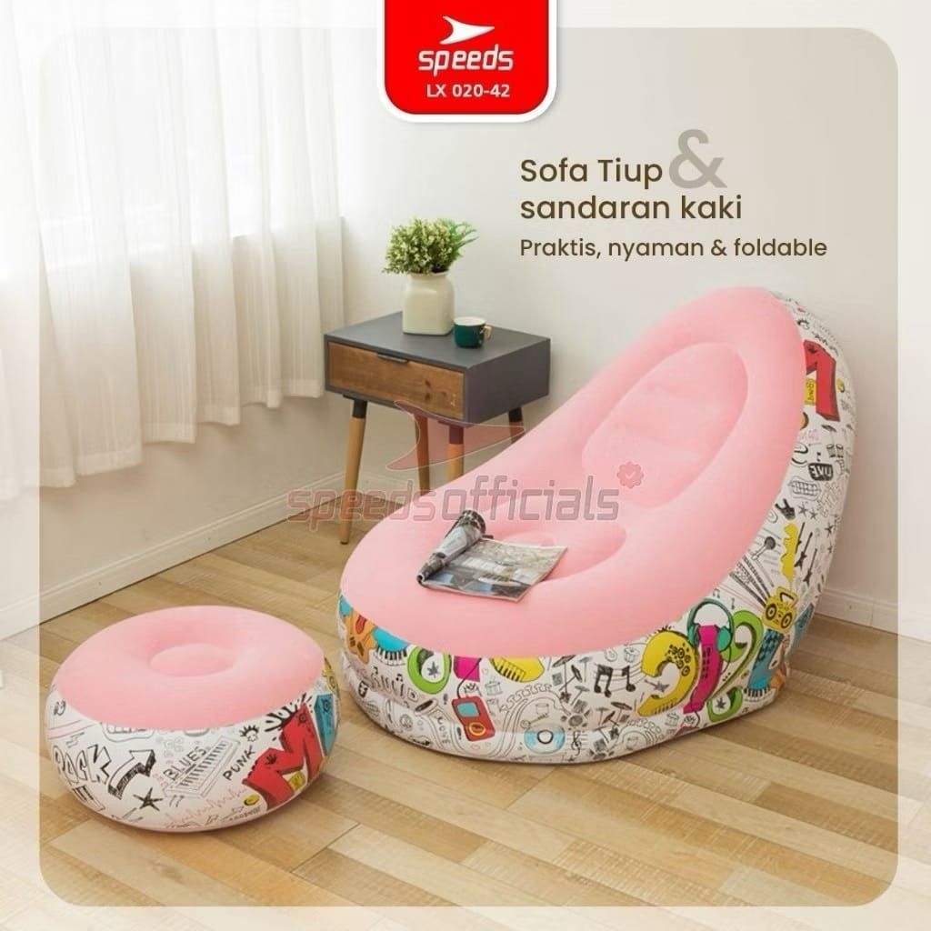 Sofa Angin Beanbag Squishy Jumbo Inflatable Sofa Tiup Angin Lazy Bag Outdoor Lay Bag Indoor 020-42 (Warna Pink)
