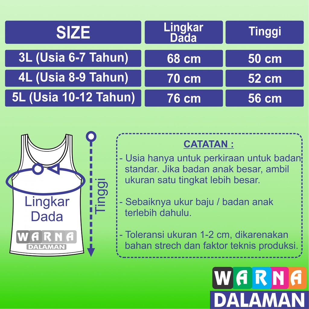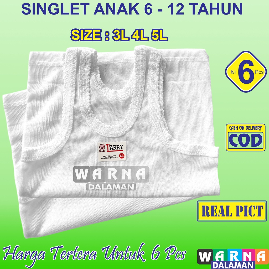 6 Pcs Singlet Ukuran Jumbo Anak Laki-Laki dan Perempuan 6 Sampai 12 Tahun | WARNA DALAMAN