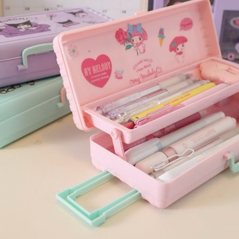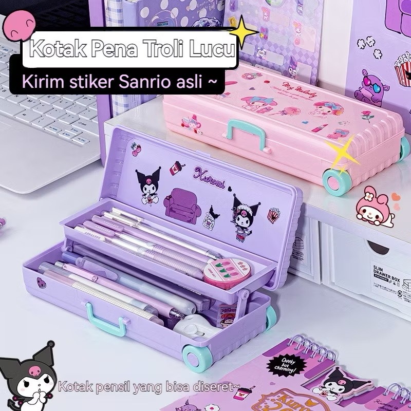 Kotak Pensil Kuromi Troli Lucu Kotak Alat Tulis Dua Lapis Kuromi Koper Kreativitas Kapasitas Besar Pemodelan Hadiah Alat Tulis