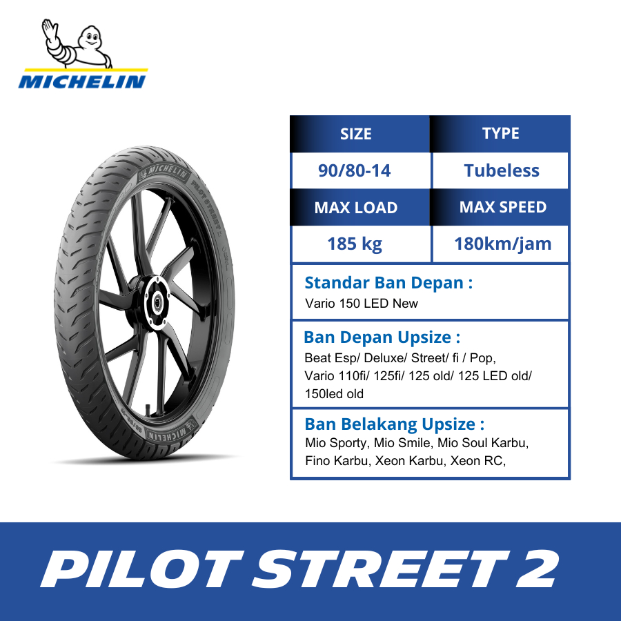 Ban Motor Michelin Pilot Street 2 - Size 90-80-14 Tubeless