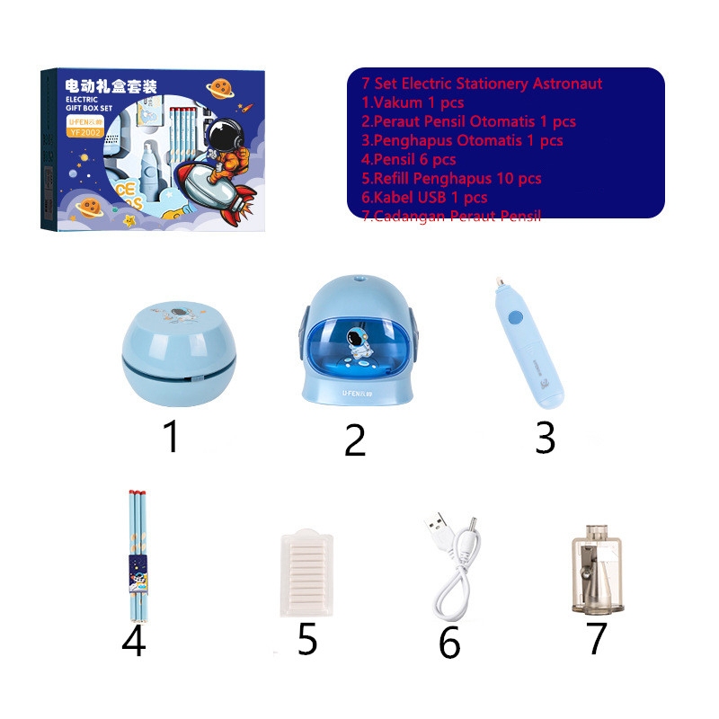 11 In 1 Electric Stationery Set / Set Alat Tulis /Elektrik Rautan Penghapus Vacuum Pensil /Anak Alat Perkakas Belajar Anak Perempuan Kado