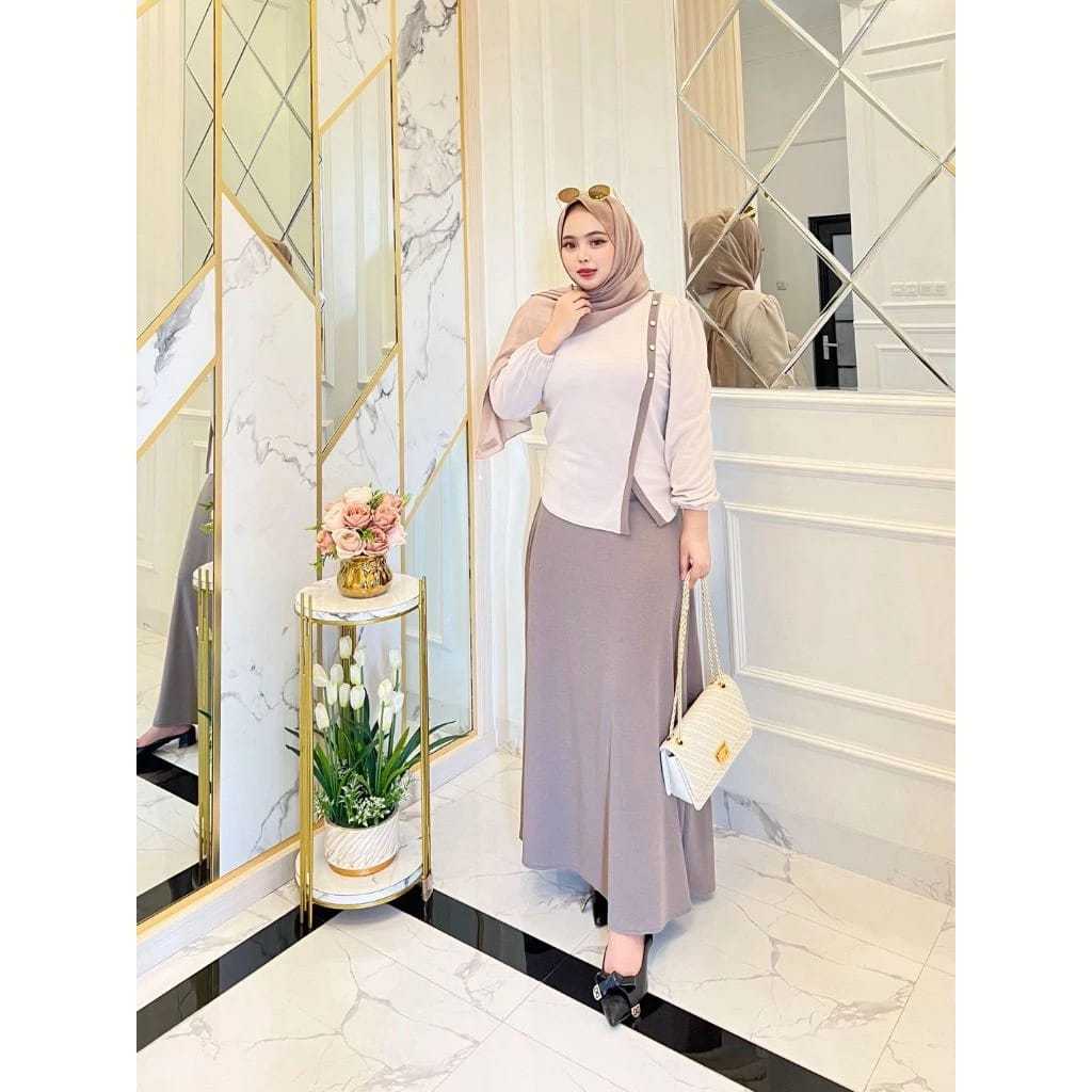 HASNA ONE SET KNIT PREMIUM MIX WARNA II FREE BROSS II ONE SET II STELAN ROK/CELANA WANITA