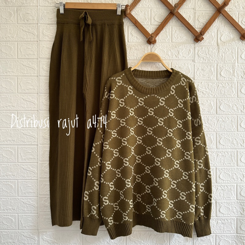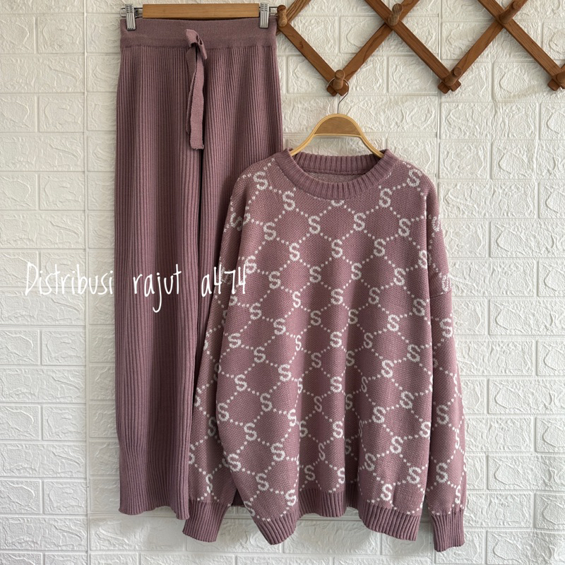 ONESET SWEATER BANGKOK SETELAN CELANA KULOT RAJUT WANITA