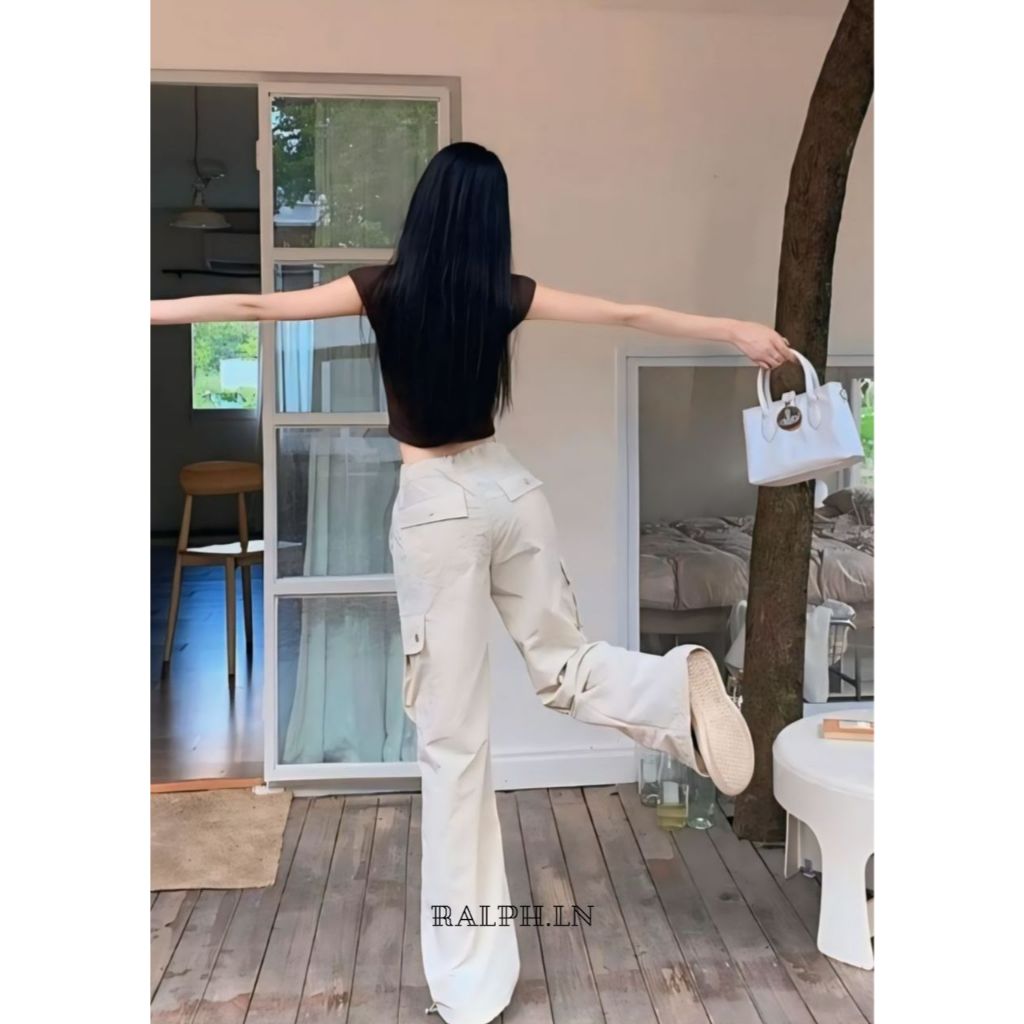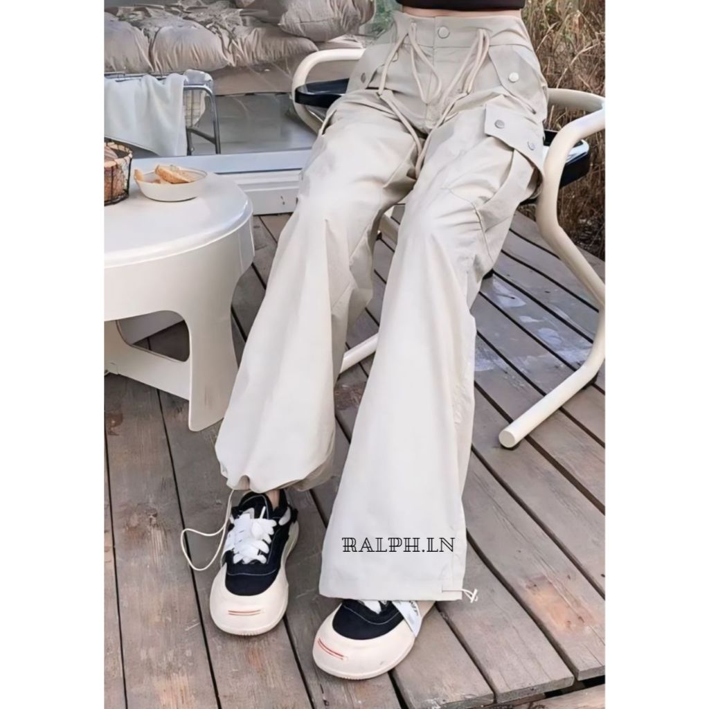 Ralph.ln celana panjang cargo jogger tali serut wanita highwaist loose model terbaru paling trending kekinian model korean fashion kasual warn a krem hitam abu putih all size catton combat