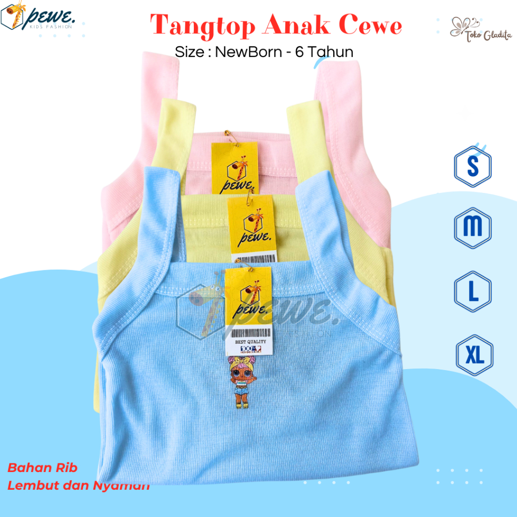 6Pcs Kaos Dalam Anak Perempuan- Tanktop Anak Karakter- Singlet Anak Perempuan Warna- Kaos Dalam Anak