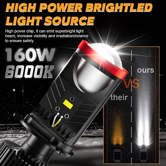 Lampu Led Mobil Dan Motor H4 Mini PJECTOR PROJIE Y7D Y17D SUPER BRIGHT 160 Watt/Dengan kipas angin IP68 Waterproof