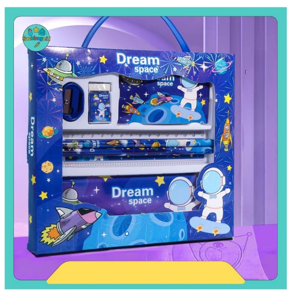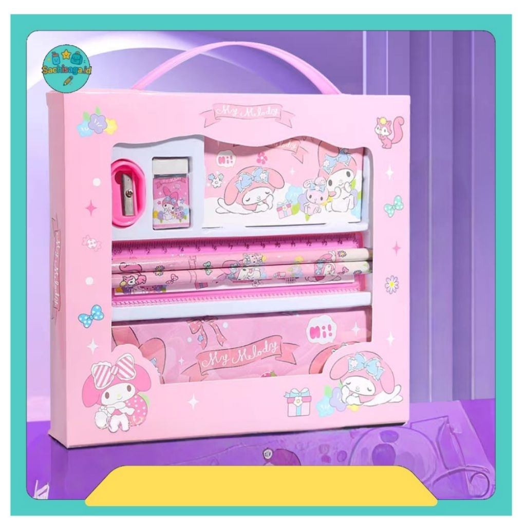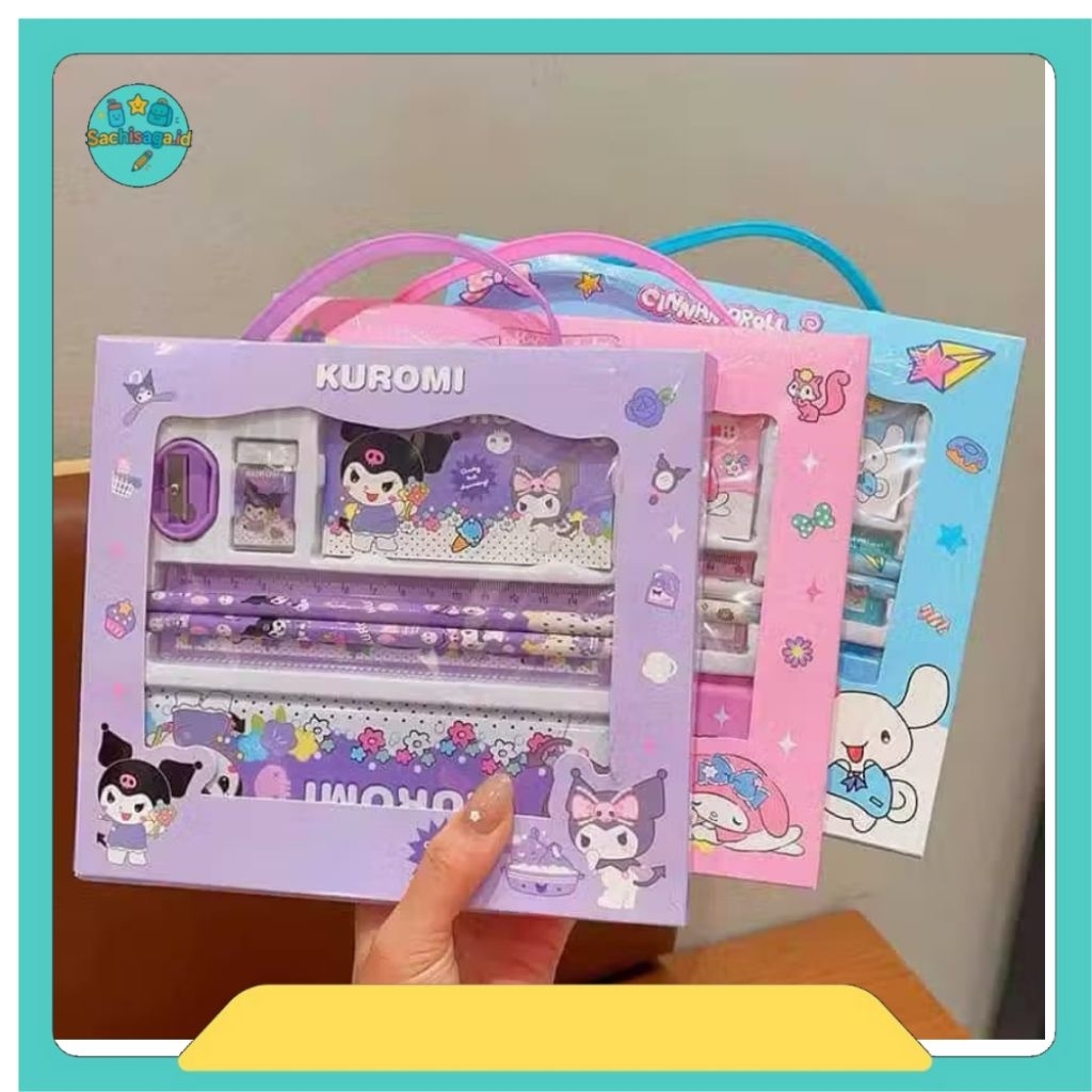 Stationery set 7 in 1 dan 6 in 1 penggaris pensil penghapus rautan kotak pensil