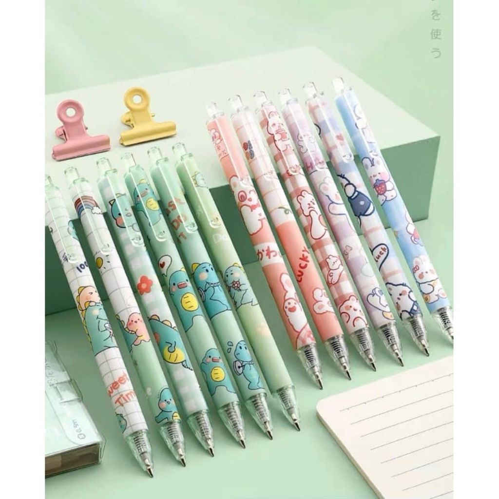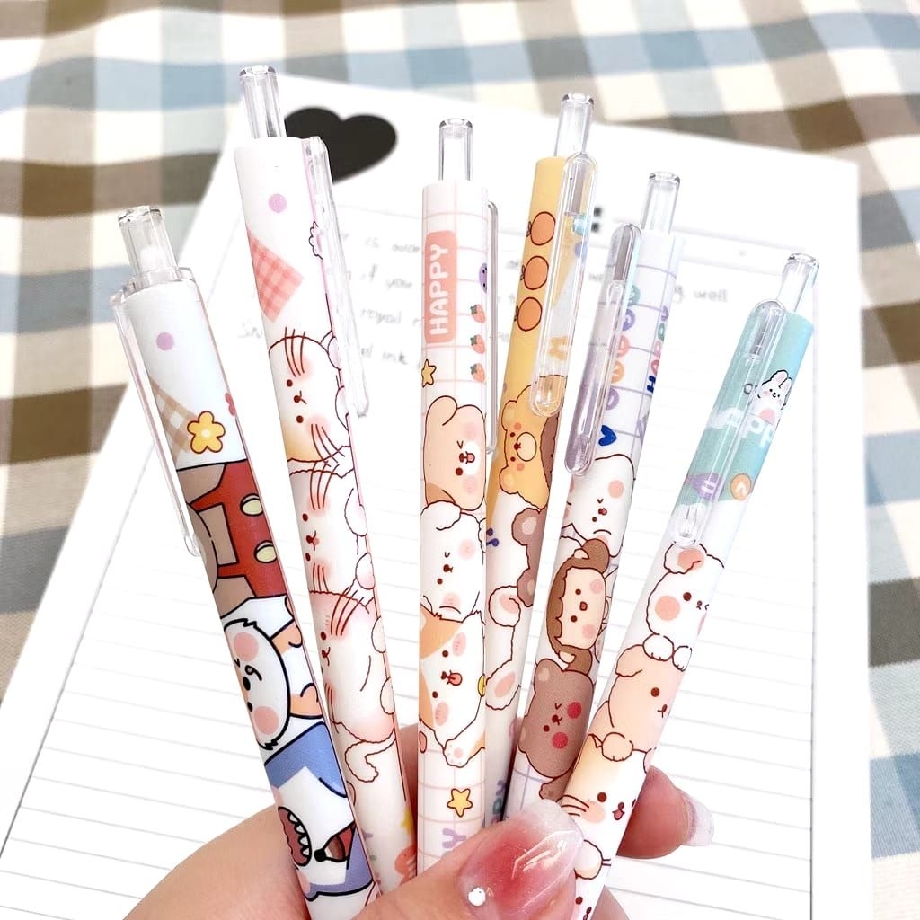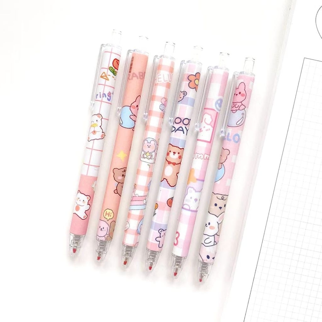 SKINHii - 6pcs Pulpen Gel Set Pena Pen Lucu 0.5mm Pulpen Aesthetic Gel Pen Pulpen 1 Pack Mekanik Pulpen Tinta Hitam Alat Tulis Stationery Bulpen Bolpen