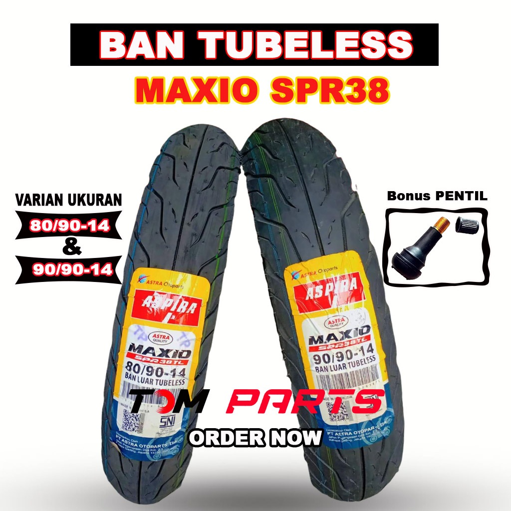 Ban Tubeless Aspira Maxio SPR38 80/90-14 & 90/90-14 Free Pentil Ban Tubeless Motor Matic Ring 14