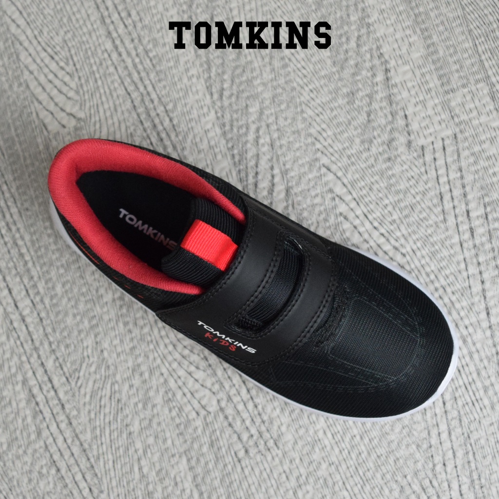 TOMKINS Crystal - Hitam Merah Sepatu Sekolah Anak TK